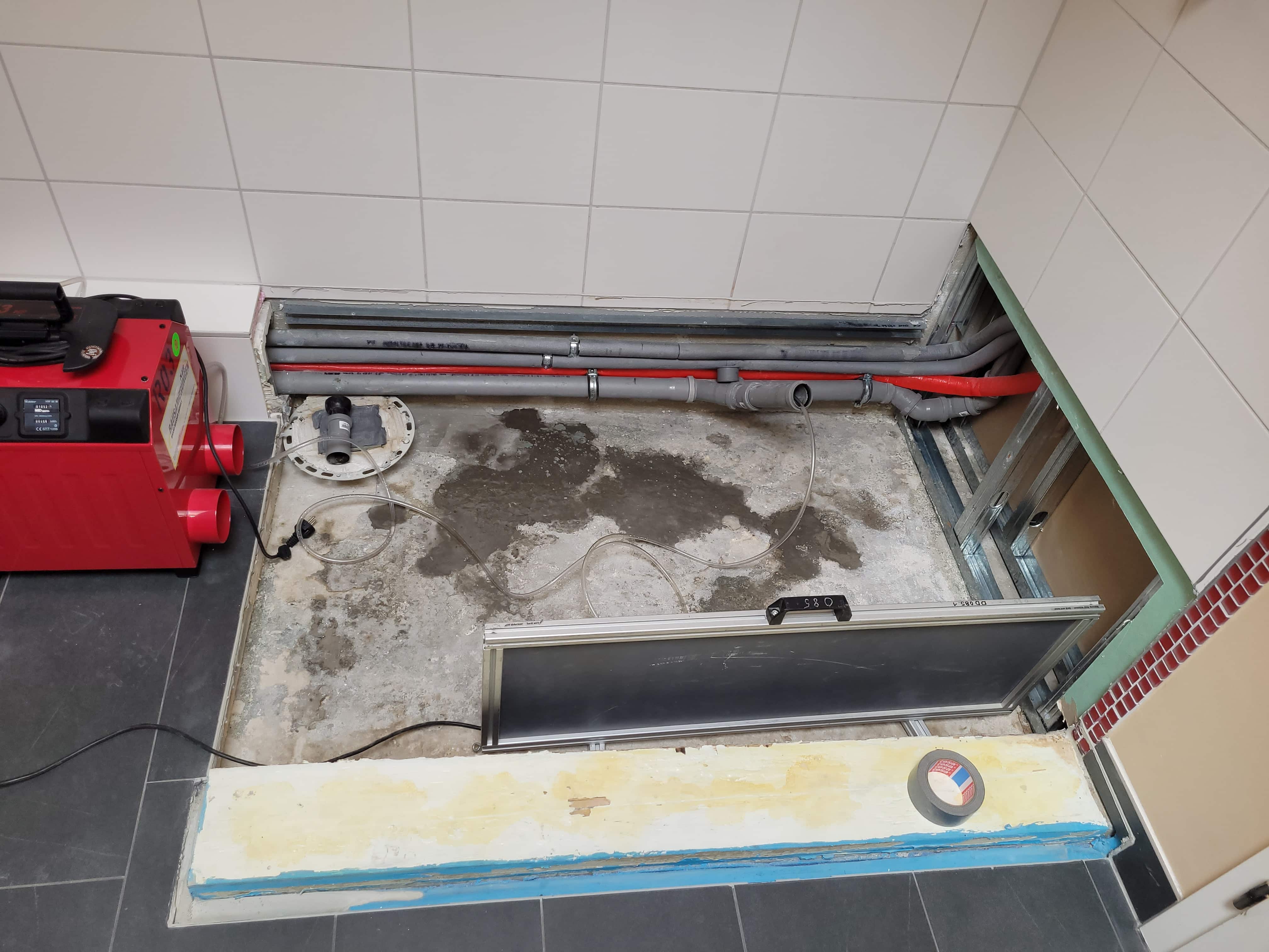 - Estrichfußboden und Gipskartonwände durchfeuchtet